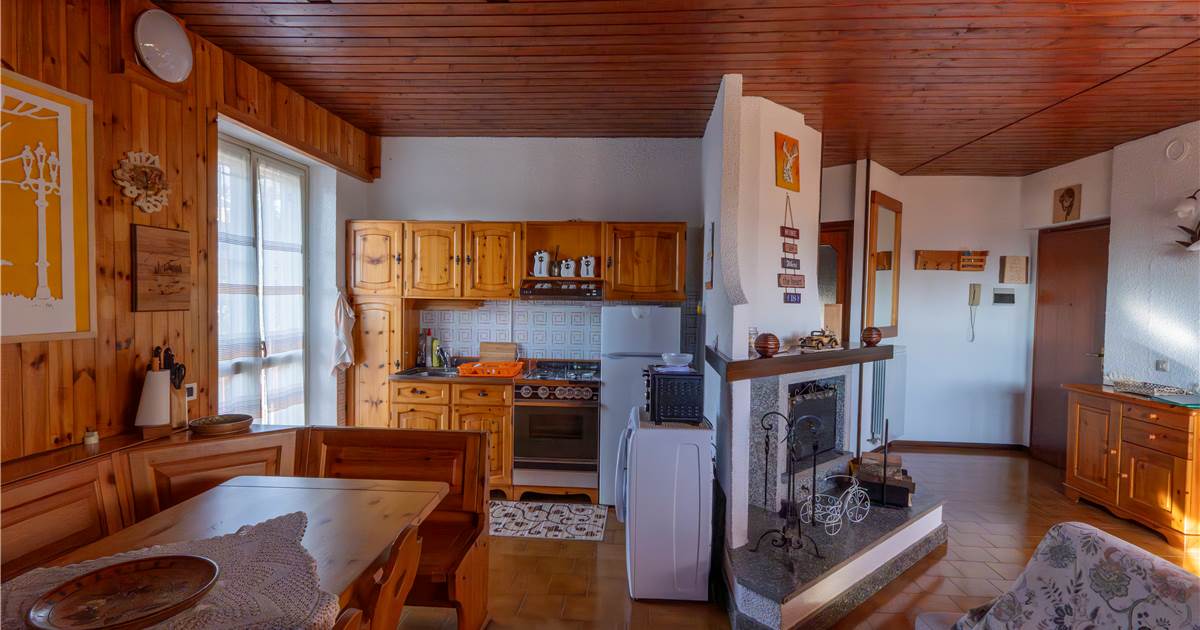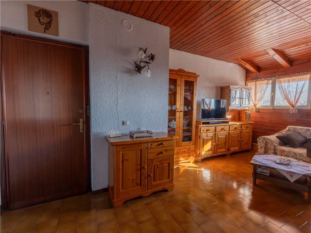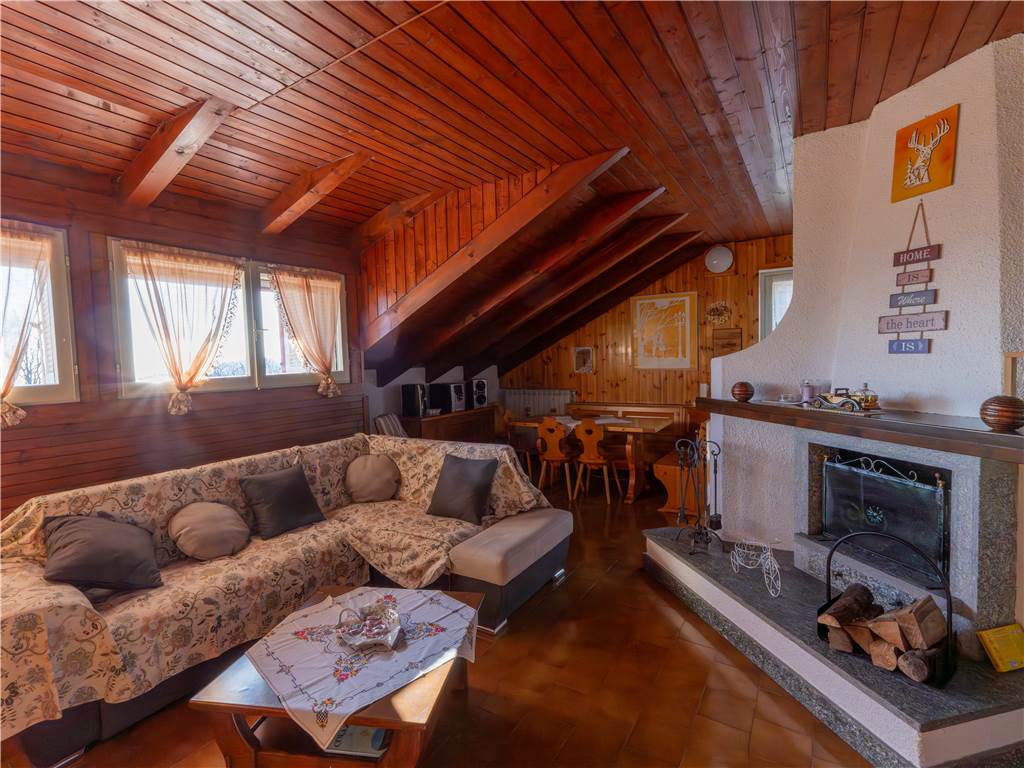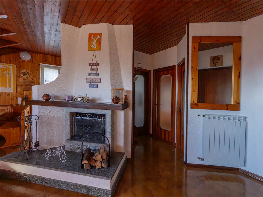 The apartment of about 78 sqm is composed of a large living area with a living room and fireplace, a dining area and open plan kitchen, two bedrooms, a bathroom, and a large and sunny balcony, ideal for relaxing outdoors.