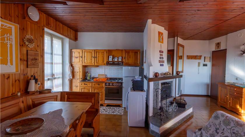 The apartment of about 78 sqm is composed of a large living area with a living room and fireplace, a dining area and open plan kitchen, two bedrooms, a bathroom, and a large and sunny balcony, ideal for relaxing outdoors.