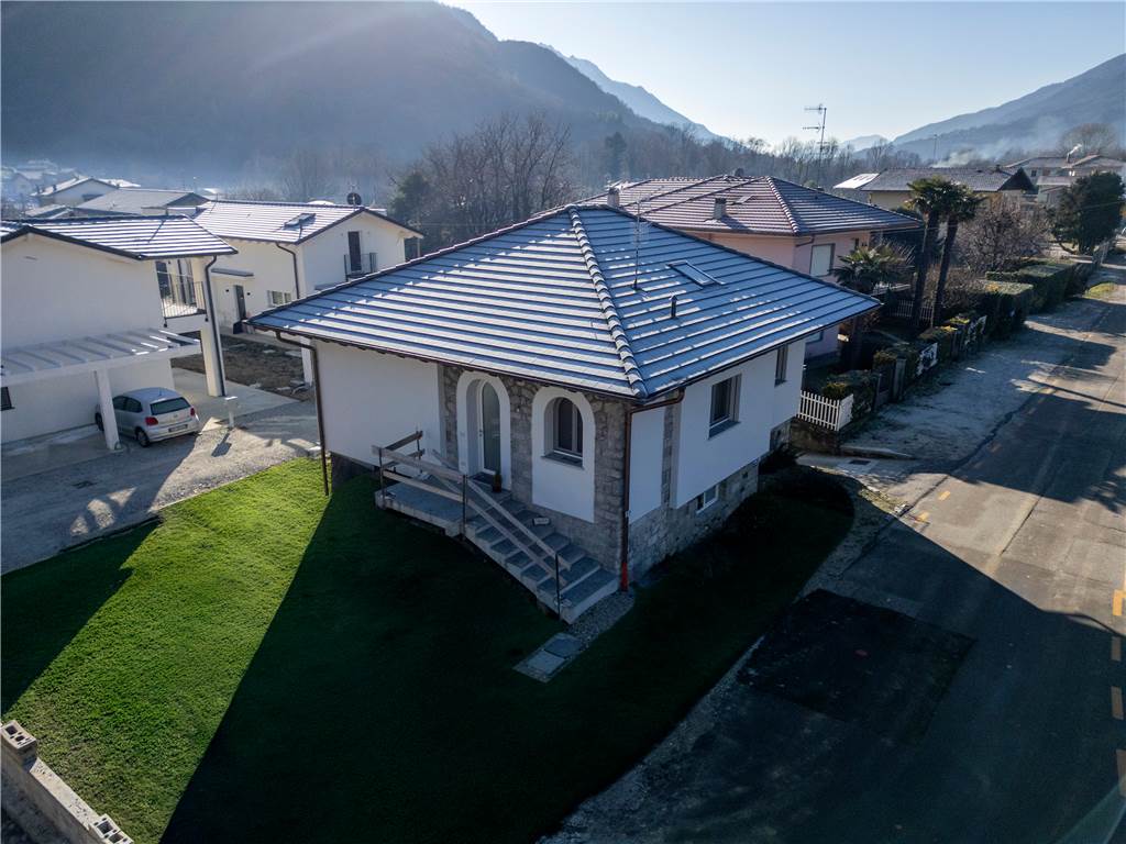 A Mergozzo, a pochi minuti dal centro storico e dal lago con le sue attrazioni, bar e ristorantini, in un gradevole contesto residenziale, proponiamo in vendita una villa dal gradevole stile architettonico oggetto di una totale ristrutturazione e riqualificazione energetica nel 2025, inserita in un soleggiato giardino di circa 200.